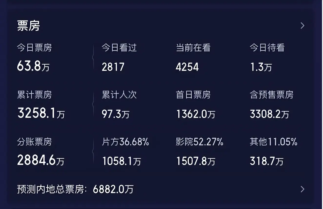 其实该片首日上映,电影院给的排片还是不错的,给了12%,但是这一部电影倒挂得相当厉害。