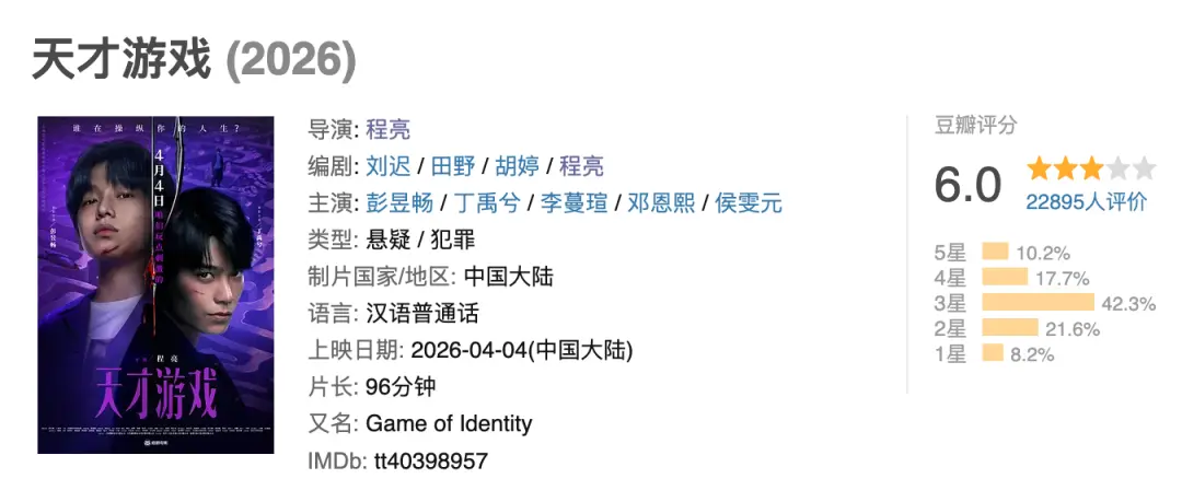 不过,要说到惨,有一部电影,堪称是顶流云集,筹备6年,但票房却惨淡得不是一星半点,那就是电影《天才游戏》。